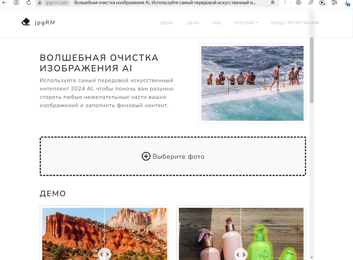 - Удаление объектов: Основная функция jpgRM — удаление нежелательных элементов. Эта функция позволяет пользователям избавляться от случайных предметов, логотипов, водяных знаков и даже людей на фотографиях, не нарушая общего качества изображения.