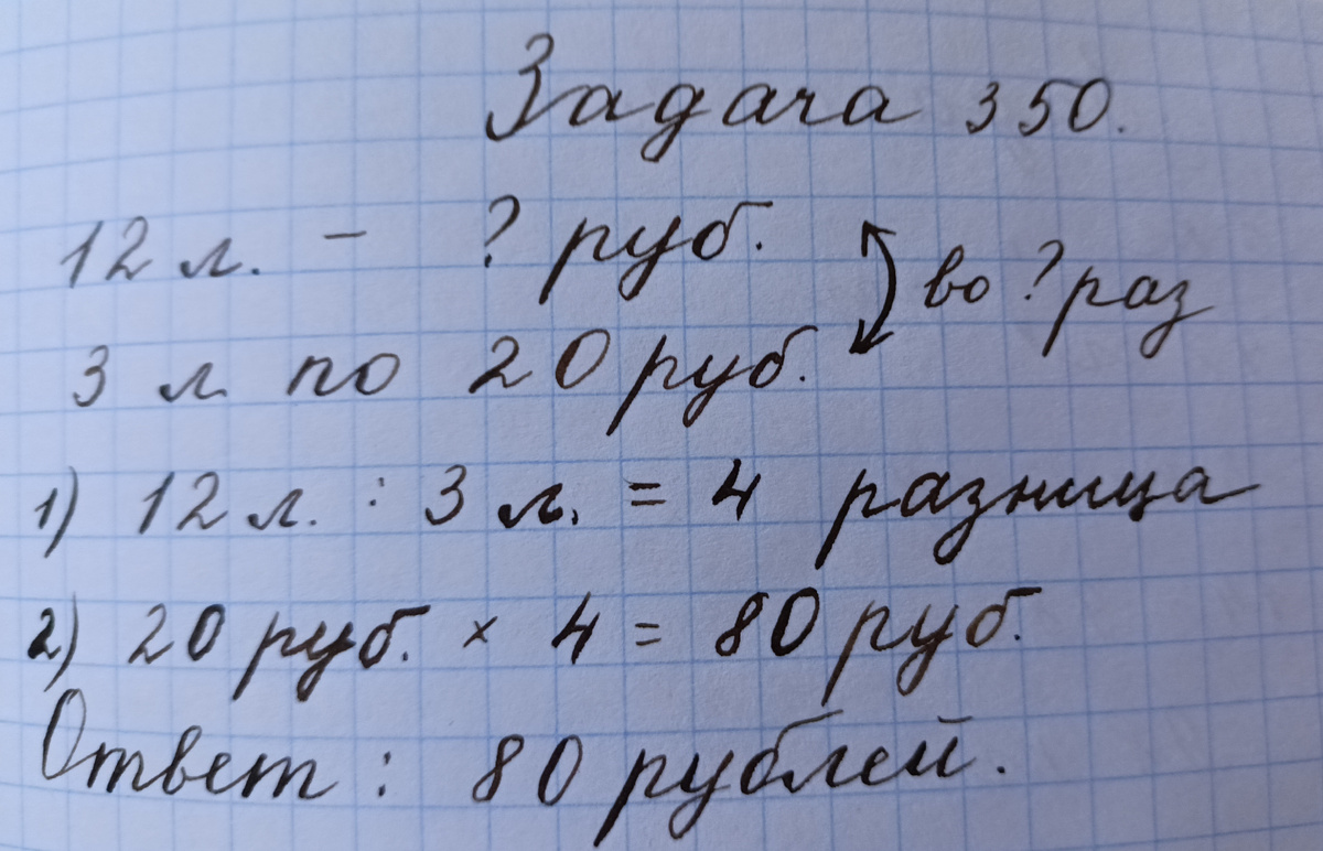 Аналогично решаются задачи 351-354. Дети, которые поняли способ решения задач, работают самостоятельно. Остальные учащиеся выполняют с помощью учителя.