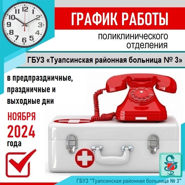 ГРАФИК РАБОТЫ ПОЛИКЛИНИКИ ГБУЗ "ТУАПСИНСКАЯ РАЙОННАЯ БОЛЬНИЦА № 3" В ПРАЗДНИЧНЫЕ И ВЫХОДНЫЕ ДНИ