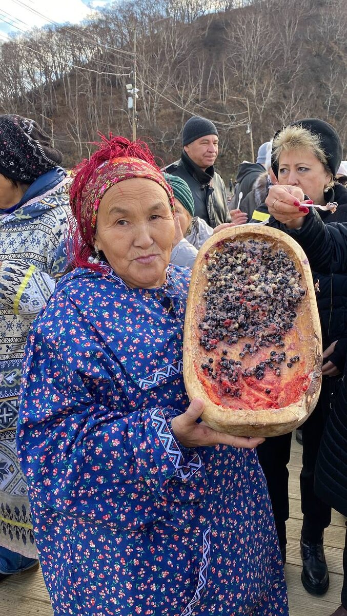 Здравствуйте. И вот, что интересного я решил написать и поделиться с вами. И так читайте 👇 🥣 Главным блюдом на корякском празднике «Хололо» (в Тигильском районе «Олололо») является толкуша. Компоненты для приготовления толкуши заготавливаются летом и осенью. Самый трудоемкий процесс это заготовка мякоти иван-чая. Для этого необходимо выбрать мясистые стволы иван-чая, очистить от листьев. Сделать надрез вдоль стебля, вскрыть и специальной ложкой соскрести мякоть, высушить ее. Толкуша бывает белая и темная. В состав темной толкуши входит: 1. Сушеная икра от 1 до 2-х кг 2. Клубни рябчика (сараны) 1 кг 3. Клубни Кымчиги (клайтония) - 2кг 4. Сушеная мякоть Иван-чая -2кг 5. Топленный нерпичий жир 2кг 6. Ягода шикша - 5кг Способ приготовления Для начала очищают сушеную икру от тонкой пленки, затем долго и тщательно толкут специальной деревянной толкушкой. Замоченную мякоть иван-чая так же толкут, добавляя нерпичий топленный жир. Клубни сараны и кымчиги варить надо очень долго,