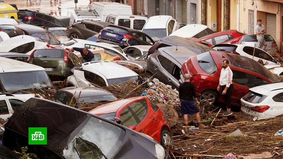 [ Смотреть видео на сайте НТВ ] В Испании число погибших из-за мощного наводнения приближается к сотне. Данные не окончательные, десятки людей числятся пропавшими без вести. Сейчас в Испании продолжается масштабная поисковая операция, в которой участвуют около двух тысяч спасателей и военных. Тем временем сотрудники экстренных служб и простые жители убирают горы ила, грязи и мусора, которые остались после ухода большой воды. На улицах — вырванные с корнем деревья, обломки смытых зданий, а также сотни автомобилей, перевернутых и наваленных друга на друга. В Валенсии, больше всего пострадавшей от удара стихии, до сих пор не могут восстановить электроснабжение. Там царит транспортный и коммунальный хаос. Всего за несколько часов на город выпала годовая норма осадков. Ливень сопровождался крупным градом. Бушующие потоки смывали все на своем пути: машины, постройки и людей. Тех, кто успел забраться на крыши домов, спасатели эвакуировали по воздуху. Местами вода поднялась на несколько метров