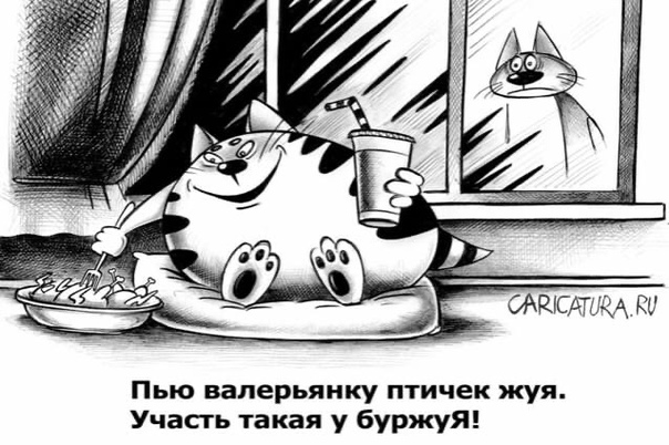 Карикатуры Сергея Корсуна все привыкли воспринимать в разрезе чёрного юмора. Эдакие залихвацкие рисунки с хлесткой сатирой на современность. Но есть у художника целая серия кошачьих комиксов, которую хотелось бы рассмотреть отдельно. Образы кошек в карикатурах Сергея Корсуна занимают особое место. Это наглые, домовитые, а иногда обожающие искусство пушистики. В карикатурах Корсун изображает кошек не просто как милых и пушистых питомцев, а как полноценных персонажей, обладающих сильными характерами и выражающими глубокие эмоции. В его карикатурах кошки часто предстают с большими глазами и выражением лица, полным удивления или хитрости, что передаёт их независимый, своенравный нрав. Линии в его рисунках одновременно просты и выразительны, что позволяет зрителю легко «считать» эмоции кошек. А все мы знаем, что эмоция — это главное в комиксе! Стоит ли искать в рисунках Корсуна двойное дно? Мол художник использует образы кошек, чтобы отражать человеческие черты. Сомнительно. Думаю он не ст