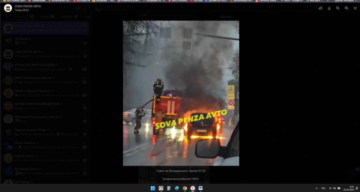 ЧП произошло сегодня, 31 октября, в Пензе. В центре города на дороге вспыхнула машина. В соцсети появилось множество видео, на которых видно полыхающую открытым огнем легковушку и пожарных, тушащих пламя. «На Советской перед перекрестком с ул. Карла Маркса загорелась машина. Пожарные предотвратили взрыв, все потушили», – рассказала одна из пензячек. В региональном МЧС сообщили, что инцидент произошел на улице Карла Маркса в 7:18 утра. У автомобиля «Renault Sandero» загорелся моторный отспек во время движения. Машину потушили 4 пожарных, которые использовали одну спецмашину. Читайте также: подробности по кровавому ЧП на ул. Московской с мигрантами озвучит следственный комитет.