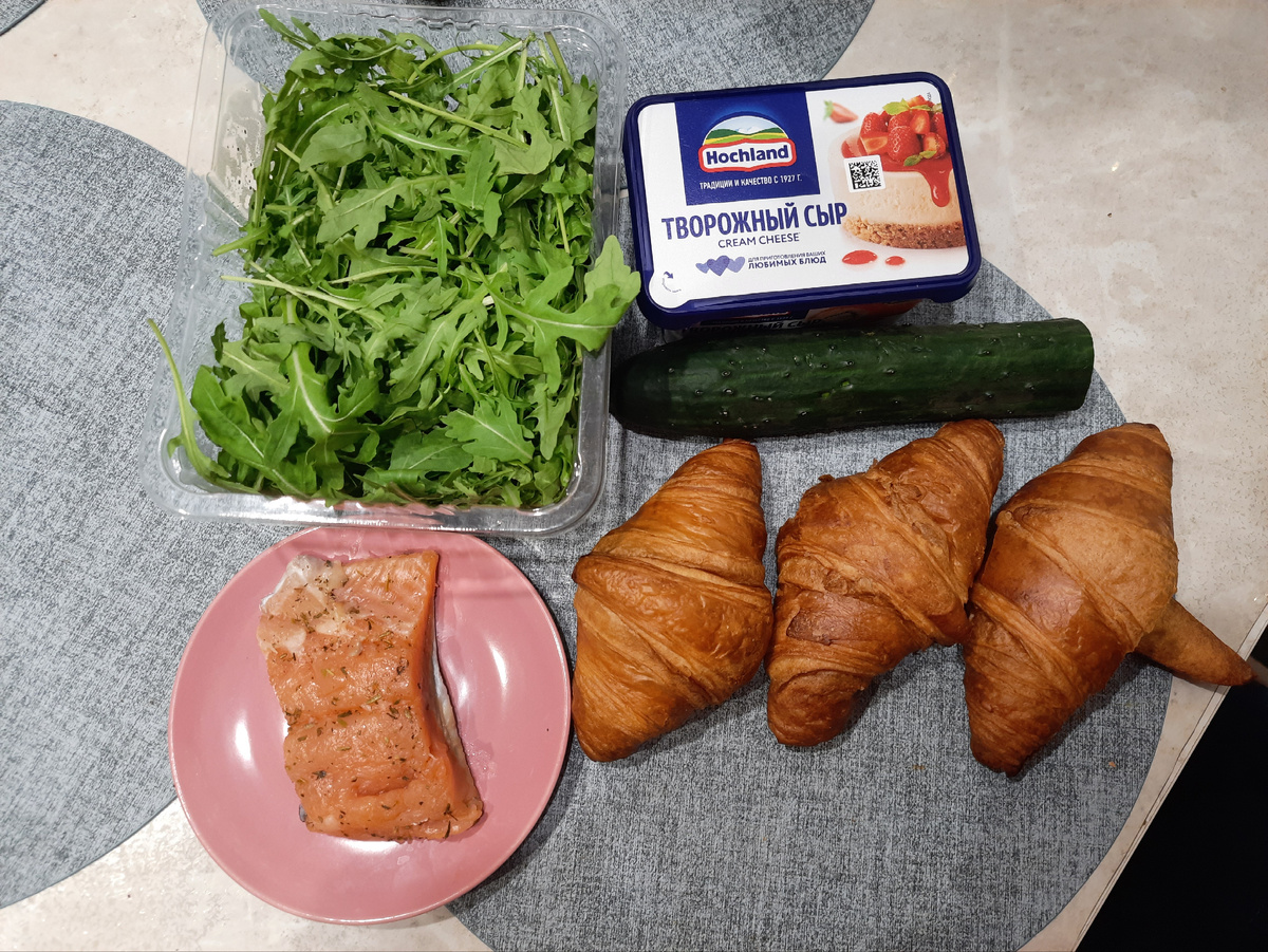 Доброго времени суток, друзья и гости моего канала! Меня зовут Мила, мне 32 года, рост 163 см, и сейчас я худею с 77 кг. Максимальный вес был 85 кг. Моя цель - 59 кг. На своем канале я веду дневник похудения, а также рассказываю истории из своей жизни, делюсь рецептами и житейскими лайф-хаками. Присоединяйтесь, у меня интересно!)) Купив недавно свежую форель, мы сейчас уже доедаем ту часть, которую я засолила. Ее я добавляла и просто на хлеб, и на тарталетки и в ролл. Но самый вкусный способ - это с круассаном. Такой "бутерброд" я однажды попробовала в кафе, с тех пор я его фанатка. Да к тому же еще и полюбила рукколу, которую раньше терпеть не могла)) Для такого вкусного завтрака или перекуса нужно не так уж и много ингредиентов: свежий круассан (мне вчера повезло, купила в смарте только из печки, еще горячие были), творожный сыр (кстати, самый вкусный тоже покупаю в смарте, в чижике ну вообще не нравится), руккола, свежий огурец и сама форель (или любая другая соленая рыба). Сек