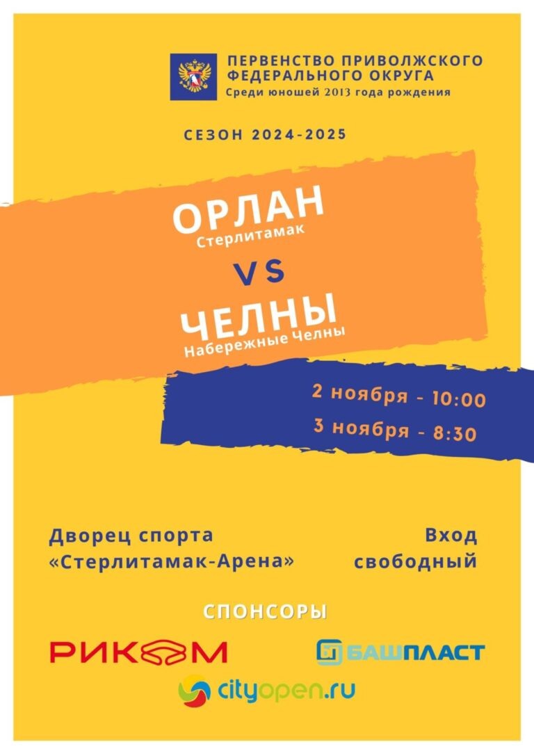 В Стерлитамаке пройдет матч Первенства Приволжского Федерального округа по хоккею среди юношей 2013 года рождения. Второго и третьего ноября сыграют ХК «Орлан» (Стерлитамак) и ХК «Челны» (Набережные Челны). По сообщению спортивной школы №3, матчи пройдут в «Стерлитамак-Арене». Второго ноября игра начнется в 10:00, а третьего числа — в 8:30. Вход свободный. Также напомним, что в эти же выходные на льду «Стерлитамак-Арены» сыграют ХК «Орлан» (Стерлитамак) и ХК «Южный Урал» (Орск) в рамках Первенства России среди юношей 2011 года рождения: В Стерлитамаке на выходных пройдут хоккейные матчи в рамках Первенства России