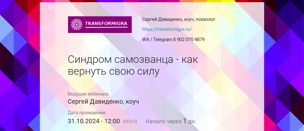 - наоборот, беру на себя ответственность больше чем надо. Помним, что синдром самозванца - это неуверенность в собственных силах и страх, что об этом узнают другие. Если не уверен в собственных силах, значит могу не справиться. Зачем лишний раз перегружать свою психику? Кстати, есть ещё один, характерный для постсоветского пространства вариант - когда в детстве ребенку поручали слишком много ответственных дел (смотреть за хозяйством, няньчиться с младшими братьями и сёстрами). И надо сначала нашего Внутреннего Ребёнка освободить от груза той прошлой ответственности прежде чем двигаться дальше. И, конечно та самая история, когда человек берёт на себя чужую ответственность, чужие обязанности для того, чтобы быть хорошим и компенсировать низкую самооценку. То есть, если столкнулись с синдромом самозванца - будет полезно поисследовать что с балансом отве
