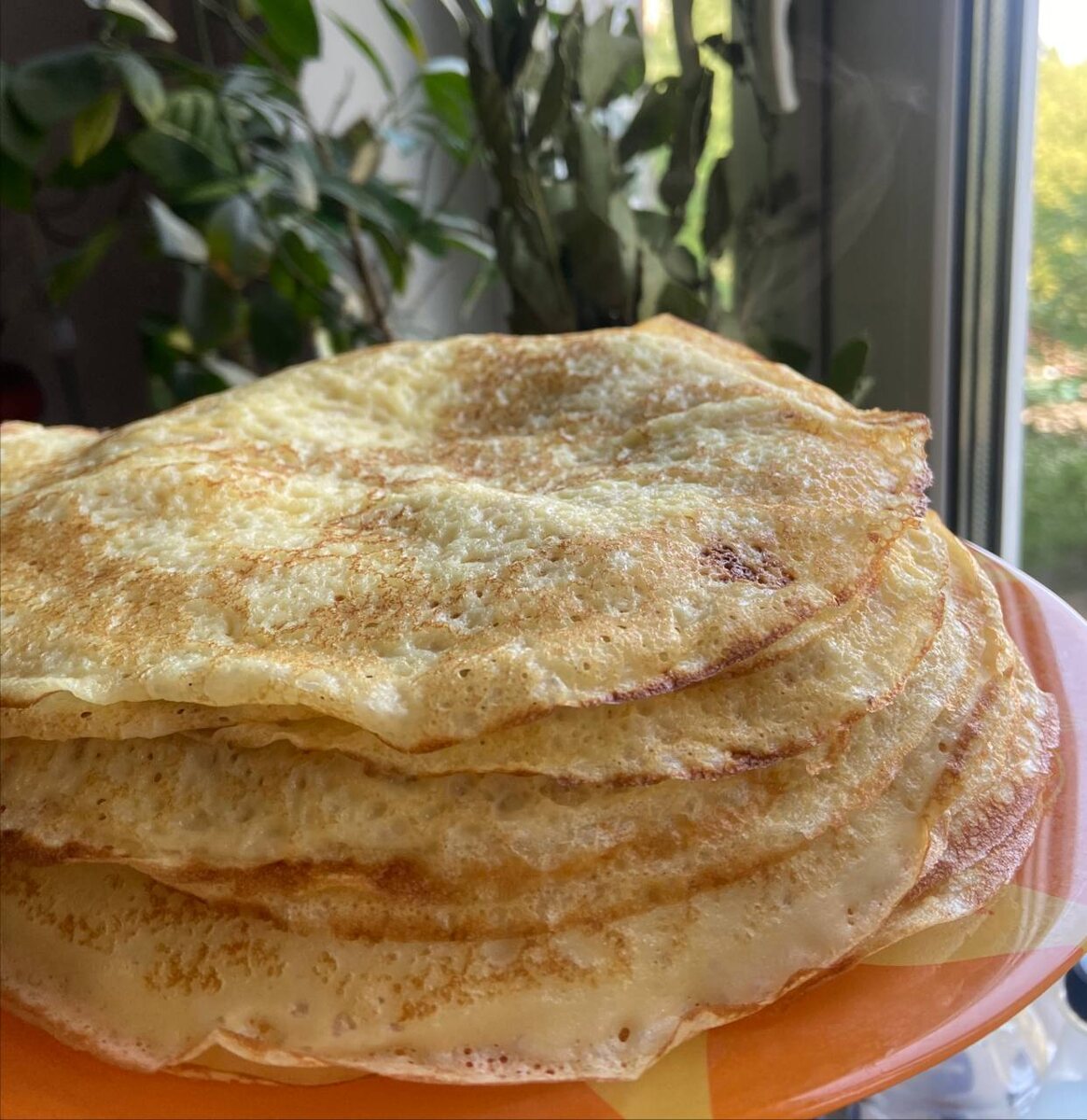 Наверное, из-за этого рецепта я решила создать свой телеграмм-канал. Так получилось, что в разные периоды жизни я делилась рецептом блинов с разными людьми и каждый раз получала замечательную обратную связь🙂 Ингредиенты: •молоко 1 коробка или бутылка (не принципиально будет там 900 или 1000 мл) •3 яйца •3 столовые ложки раст.масла •3 столовые ложки растопленного слив. масла •щепотка соли •сахар 1,5 стол.ложки •мука (подробности в рецепте) Молоко обычно немного подогреваю, добавляю все ингредиенты, перемешивая венчиком. В самом конце ввожу муку. Муки нужно столько, чтобы консистенция теста напоминала ряженку или кефир. Соду не использую никогда, блинчики все равно выходят с дырочками🙂 Очень важно подобрать хорошую сковородку. На разных сковородках и выпекаются блинчики по-разному. Маслом смазываю поверхность только для первого блина, остальные уже этого не требуют. Тесто очень насыщенное и не нуждается в дополнительном масле. Использую максимальный огонь и делаю вс