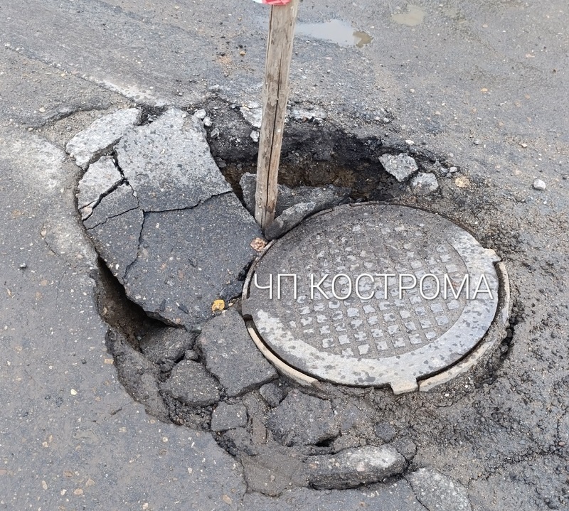 В Костроме провалившийся посреди дороги колодец обещают отремонтировать к середине ноября