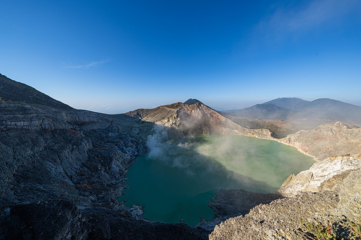 В Индонезии (где на Бали на прошлой неделе успешно прошла наша кибербез-конференция SAS) очень много весьма достойных вулканов. Как-то раз уже гуляли по ним в новогодние денёчки-2018 (подробные рассказы здесь); в прошлом (2023) году после пресс-мероприятия решили залезть на вулкан Ринджани на соседнем острове Ломбок; а сейчас метнулись в другую сторону от Бали на главный индонезийский остров Ява, чтобы сходить на ещё один роскошный вулкан — Иджен. Вулкан не очень высокий — всего 2769м, — да и на самую вершину лезть не надо. Прогулка по кальдере и спуск к озеру — вот наши главные цели, исключительно созерцательные. Сам кратер хорош, диаметром чуть более километра, в котором плещется весьма симпатичное озерко бирюзового цвета. Да ещё и огромная фумарольная площадка серой сифонит и дымом весь этот вид украшает. Здесь есть на что посмотреть! С края кальдеры тоже виды весьма достойные показывают: Красотища! И несмотря на то, что я уже отметился здесь в январе-2018, было решено сбегать на ву