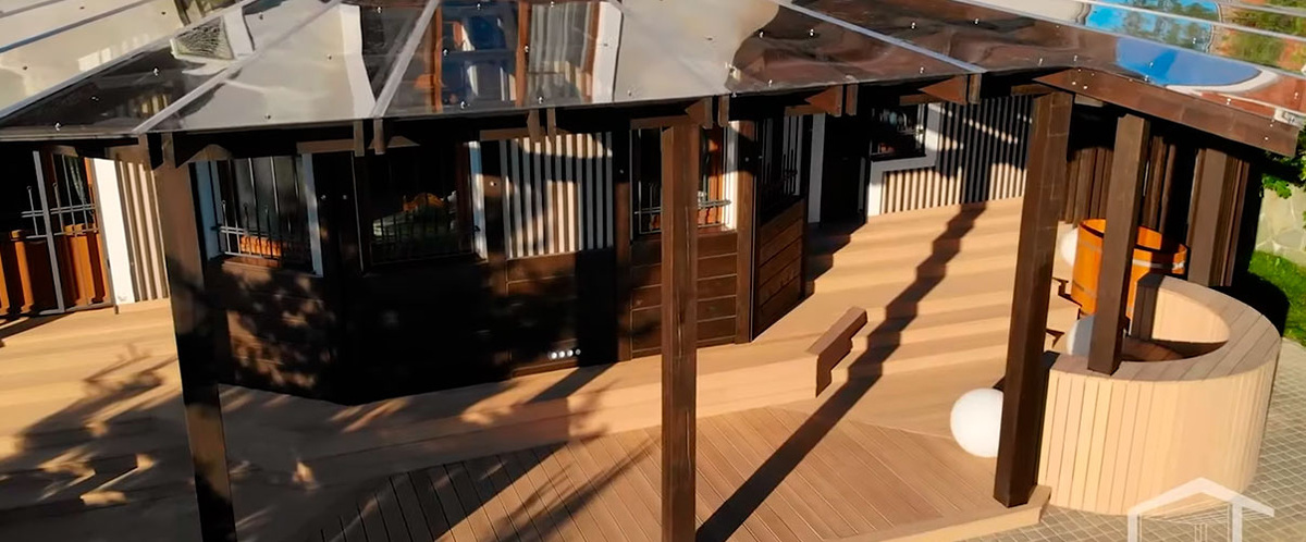 Сравнительно недавно мы обсуждали с заказчиком проект террасы с теплым бассейном и 2 варианта навеса. Первый вариант был из металла, а второй – из древесины лиственницы. Ответ был очевиден.