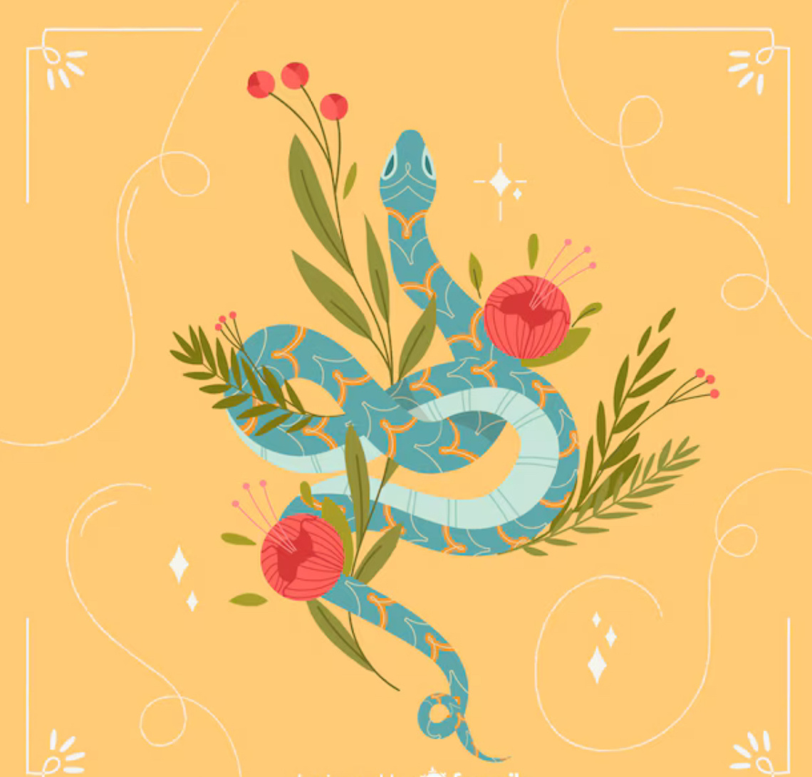 Образ змеи встречается во многих религиях, причём часто он вызывает как страх, так и восхищение. В Библии змей ассоциируется с искушением и грехопадением, ведь именно змей убедил Еву вкусить запретный плод. Здесь змей стал воплощением зла, обмана и разрушения. Эта библейская история создала образ змея как символа, который противопоставляется добру и ассоциируется с опасностью. В дальнейшем этот образ привёл к тому, что в христианской традиции змей стали считать символом дьявола и искушений. Однако в других религиях змея символизирует не зло, а мудрость и защиту. В индуизме змеи считаются священными, и некоторые боги, такие как Шива, изображаются с змеями вокруг шеи. В индуизме змеи символизируют защиту и трансформацию, и многие храмы украшены скульптурами змей. В буддизме змея тоже не несёт негативного значения: в некоторых мифах рассказывается о том, как великая нага защищала Будду, когда он медитировал. Таким образом, змея здесь становится символом покровительства, силы и просвещен