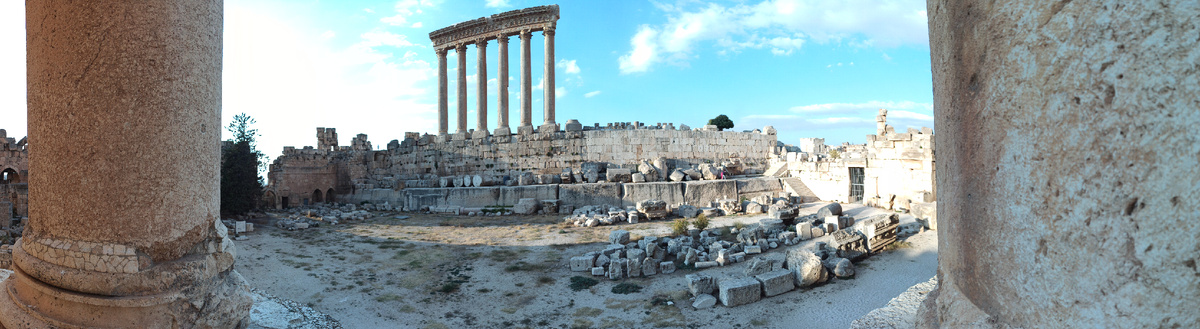 Немного, потому что у меня гигабайты его фоток. Я там, наверное, раз 200 была. Не считала и посчитать невозможно. Чаще всего не снимаю ничего, просто там работаю. Но иногда он сам просится. "Сними меня, сними"... Очень много есть фото с разными деталями и подробностями. С резьбой по камню. Но пока ограничусь общими видами и планами. Скажем, вот с этой стороны его мало кто снимает. А тут две эпохи. Непосредственно, римская (оставшееся от двух храмов) и стены и башня времен мусульманских, город и от крестоносцев хотели защитить, но они так далеко от побережья решили не соваться, и от монгольского нашествия (не помогло). Вот эти колонны вы можете видеть на фото чуть выше в правой части фото. Они вот от этого храма. Но на этой фотке они со скрытой от нас стороны, с обратной. Зато тут вино другую арабскую пристройку и часть крепости. Массивная квадратная башня в несколько этажей была пристроена к храму. А это то, за что, наверное, боятся сейчас больше всего и разрушением чего нас, по сут