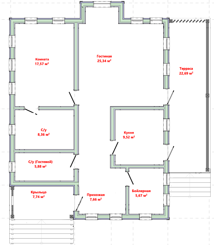 Сегодня рассказываем про реализованный недавно проект — фундамент из винтовых свай в Московской области. Фундамент предназначен для строительства одноэтажного деревянного каркасного дома. В статье раскроем технические детали фундамента и расскажем, как сложный грунт повлиял на сроки и процесс работ. Строение, для которого предназначен этот свайно-винтовой фундамент — одноэтажный каркасный деревянный дом. В доме просторная гостиная, одна комната со своим санузлом и дополнительный санузел при входе. Кухня не совмещена с гостиной, а выделена в отдельное помещение. К дому примыкает терраса, выйти на которую можно как из кухни, так и из гостиной. Размеры дома вместе с террасой — около 12 × 12 м. Всего для такого дома потребовалось 50 винтовых свай диаметром 108 мм. Толщина стенки — 4 мм. После монтажа сваи будут связаны между собой деревянной обвязкой. Что касается длины свай, она зависит от параметров грунта в пятне застройки, то есть от глубины залегания плотных слоев. Согласно предварите