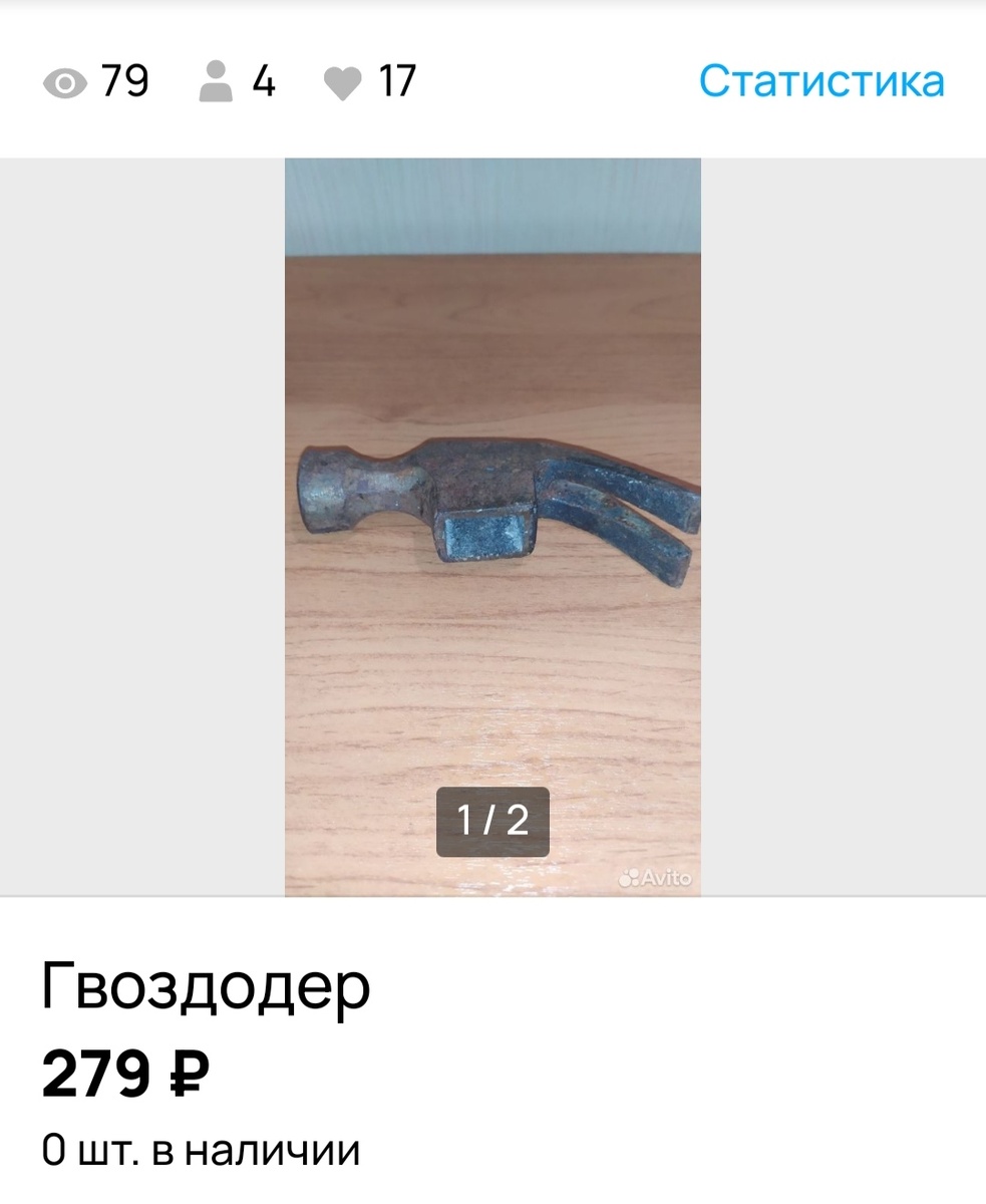 Продался молоток гвоздодёр времён СССР. После продажи отвёртки решимость продавать инструменты появилась, уверенность выросла, но все это исчезло после первого вопроса покупателя: - каленый ли мой молоток и не был ли он в костре или пожаре. Вопрос меня поставил в тупик, я ждала вопросы о ржавчине, о весе ( хорошие инструменты должны быть тяжёлые, это я у других продавцов инструментов на Авито подсмотрела, сделала фото молотка на весах и вес в описании указала) Про калёное железо я, конечно слышала, но представлялся мне по большей части с этим железом кузнец с молотом и наковальней в кузне, а каким образом это относится к моему советскому фабричному молоточку, я не представляла. Покупатель понял мою полною неосведомлённость, вопросы прекратил и попросил просто сфотографировать молоток сверху. Эта задача оказалась мне по плечу (почти), по фото он увидел то, что хотел, и наверное , то, что увидел ему понравилось, потому что заказ он сделал. А потом подробно объяснил свой интерес к ог