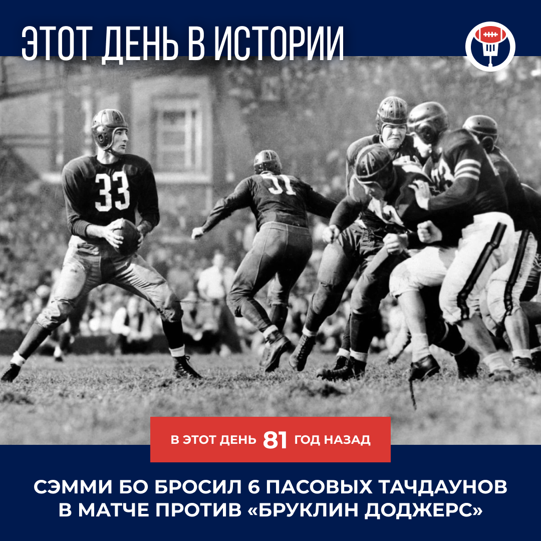 31 октября 1943 года квотербек «Вашингтон Редскинс» Сэмми Бо бросил 6 пасовых тачдаунов в матче НФЛ против «Бруклин Доджерс» 🛖