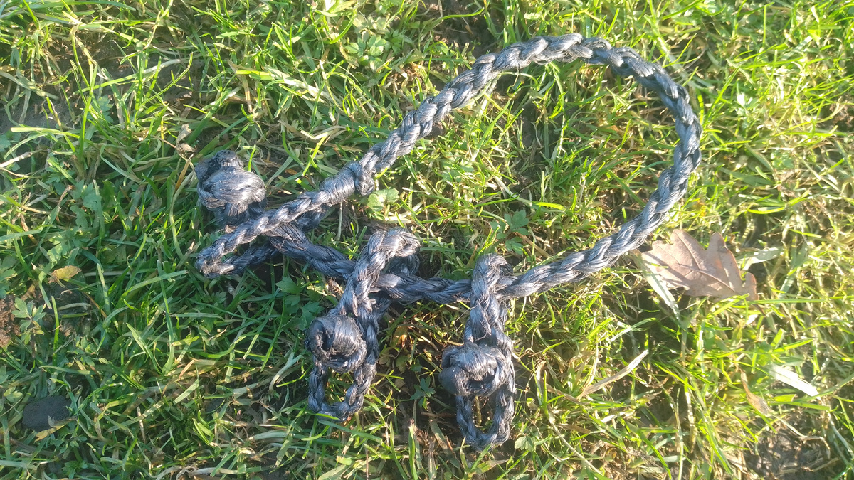 Не хватает соображения плести красивые шарообразные узелки, никак они мне не покоряются, приходится пользоваться обычным примитивным узлом, но и он работает. Зачем это мне? Даже не касаясь нынешней стоимости надёжных карабинов - за ними нужно ещё куда-то ехать, или ждать доставки почтой, в дебрях же живу. А нужны они бывают "прямо сейчас" - например, пристегнуть внезапно купленного нового козла. Внезапно нужны маленькие, большие, средние - разные. Поэтому теперь не парюсь - делаю застёжки из верёвки методом гаучо, нищих аргентинских пастухов😄 Дёшево и сердито. Конечно, изнашиваются такие застёжки быстрее металлических, зато и плетутся за пять минут на коленке. Вчера сплела три застёжки для лошадиных поводьев - большая для парковки, на замену изношенной, и две маленькие для крепления повода к трензелю. Настало время, когда намокшие от росы или дождя поводья могут обмерзать, да и просто холодно держать в руке мокрую веревку, поэтому теперь они съёмные. Люблю такие простые штуки. Узело