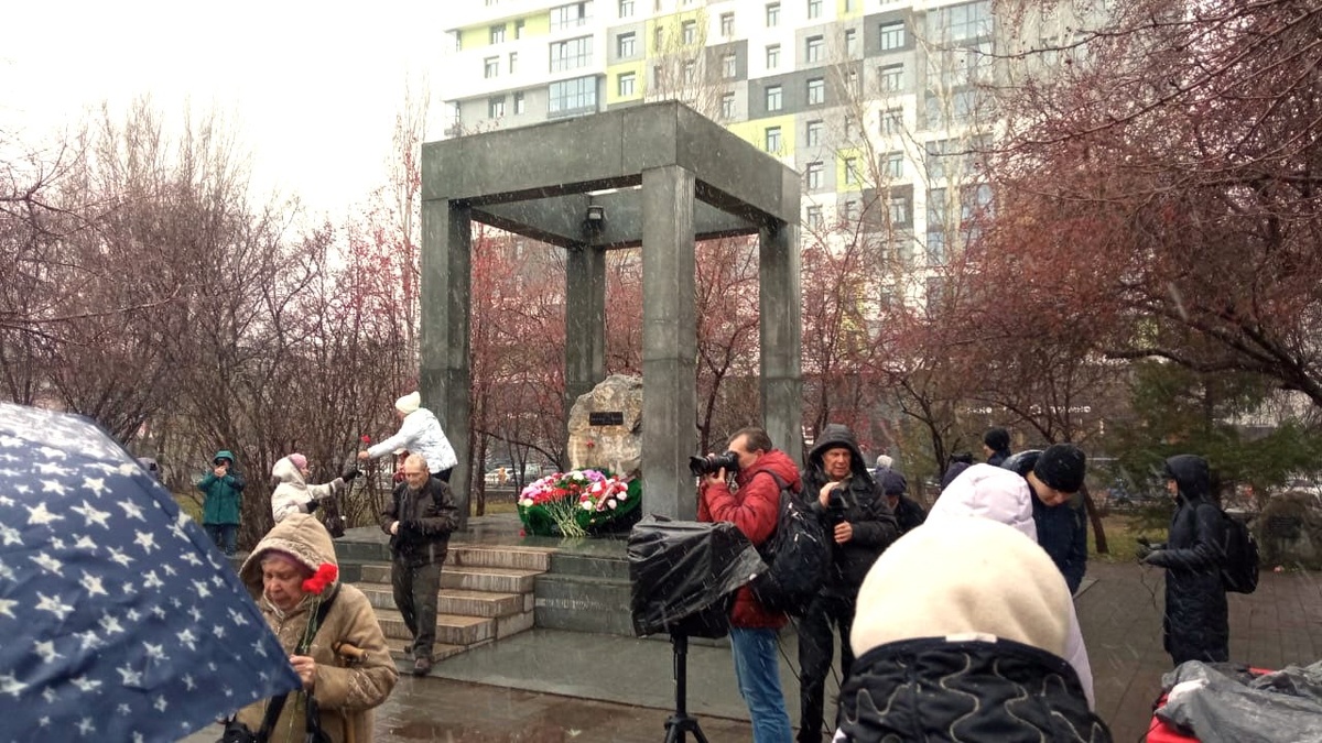 30 октября десятки новосибирцев отслушали панихиду в соборе и пришли к памятнику жертвам политических репрессий.