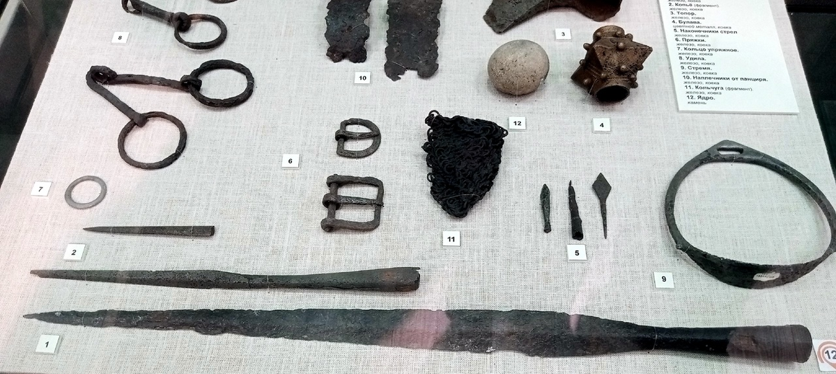 Продолжаем разговор про древнее оружие из Исторического музея Смоленска. Вот вы наверняка не раз думали-гадали, как выглядело то самое "копье долгомерное" Ильи Муромца и прочих богатырей? Больше не гадайте. Судя по всему, вот оно. Выше - обычный наконечник кавалерийской пики того времени, короткий узкий штырь. Датировка, впрочем, крайне размытая - XII-XIV век. Я бы скорректировал в пользу четырнадцатого, но диагнозы по аватаркам ставить - дело заведомо гиблое, а какой-либо научной работы про это копье мне пока не попадалось. Но в моей личной коллекции наконечников восточноевропейских копий на данную эпоху - сие рекордсмен. Обычное они были минимум вдвое короче. Кстати, это копье само по себе - признак высокого, очень высокого мастерства кузнеца. Любопытно было бы провести ему металлографический анализ. Потому что наконечник ромбического сечения, очень длинный и на вид тонкий - сковать такой, чтоб не погнулся и не сломался от первого же удара - это вам не мухобойку сделать, поляков от С