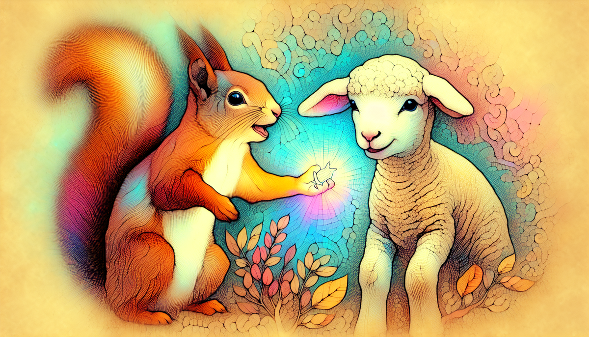 В живописном зелёном лесу жили три неразлучных друга: весёлый котёнок Лимон, добрый барашек Барашек и отважная белка Снежка. Каждый день они с радостью отправлялись в увлекательные приключения, полные веселья и искренней дружбы. Лимон, обладатель яркой рыжей шерсти, всегда был в поиске новых забав, чтобы развлечь своих друзей. Барашек, с его пушистой белой шёрсткой, любил рисовать и мечтать о сказочных мирах. А Снежка, с её блестящими глазками, была всегда готова к новым открытиям. Однажды Снежка обнаружила удивительное сверкающее семечко, которое блестело, словно звезда, и переливалось всеми цветами радуги. — Что же это может быть? — подумала она, осторожно поднимая семечко. Почувствовав, как энергия и магия наполняют её, она поспешила к своим друзьям. — Лимон! Барашек! Посмотрите, что я нашла! — закричала она. — Ого! Какое красивое семечко! — воскликнул Лимон. — Может быть, оно волшебное? — усомнился Барашек. — Давайте вырастим его! — предложила Снежка. — Мы сможем узнать, что из нег