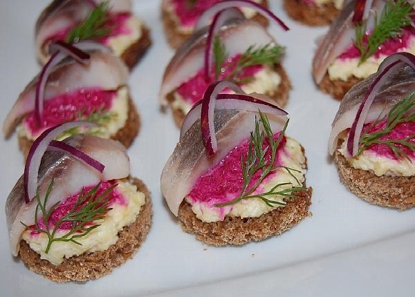 Если для вас слишком дорого приготовить бутерброды с красной икрой — попробуйте подать таким образом селёдку! Вы увидите, что она начнёт исчезать с тарелки ещё по пути из кухни)))