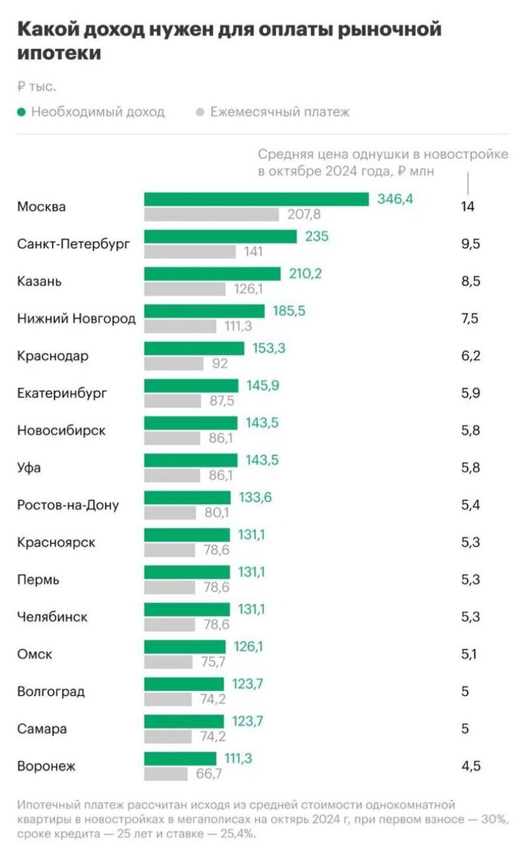 Согласно данным расчета «РБК-недвижимости» на основе данных агрегаторов и «Дом.РФ», в месяц нужно зарабатывать не меньше 123 тысяч рублей, чтобы позволить себе ипотеку на однушку в новостройке Волгограда, чтобы оставалось хоть что-то на жизнь. Средняя цена в однушке в новостройке Волгограда составляет 5 миллионов. При рыночной ставке на ипотеку в 25,4% на 25 лет с 30-процентным первоначальным взносом, ежемесячный платеж составит почти 74,2 тысячи рублей. Фото: