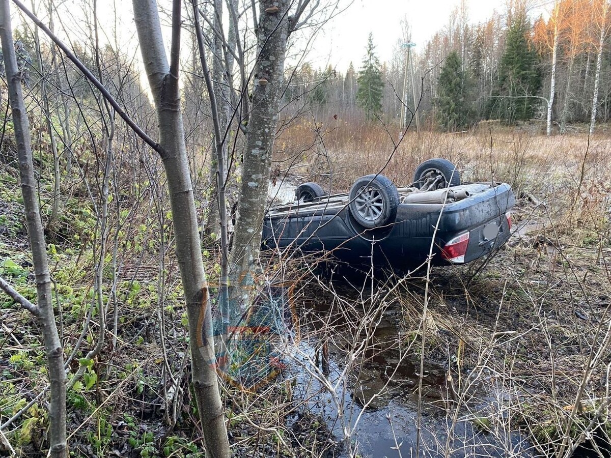 Иномарка перевернулась на крышу в Тосненском районе Ленобласти