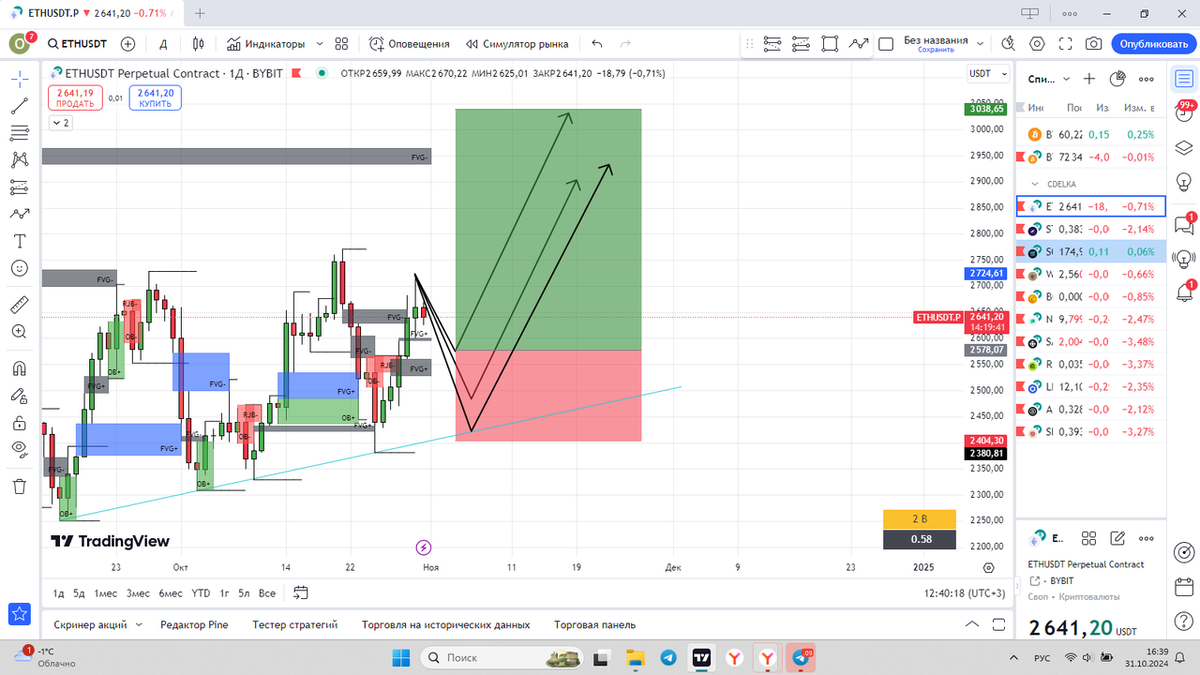 По эфиру вижу хорошее движение но ожидаю коррекцию в район 2.500-2.600 где и буду заходить в сделку. в случае откатка буду докупать в районе 2.480-2.400 К концу года ожидаю эфир по 3.000-4.000 Теперь разберем что же дает уверенность в движении - очень просто постоянно когда мы подходили к наклонной мы получали хороший откуп с образованием OB,RJB что сигнализирует о большом спросе на актив. Переходи ко мне в телеграмм канал если хочешь больше информации https://t.me/GiveYouMonney Торгую на бирже BingX https://bingx.com/invite/PWBGPX/