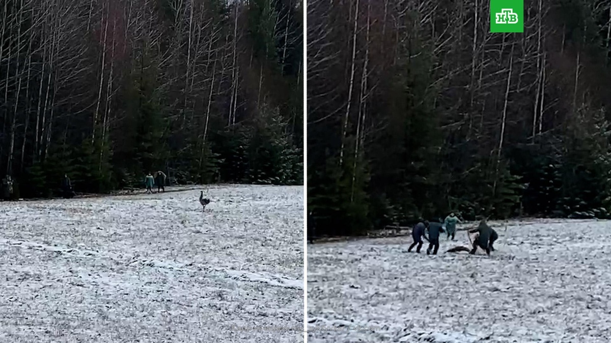 Поймать страуса смогли с помощью лассо, после чего ему вкололи успокоительное и вернули на ферму. Видео «охоты» опубликовали в соцсетях.