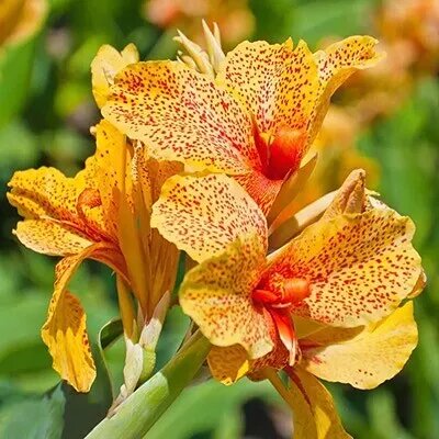 Канна зеленолистная "Пикассо" - это эффектное многолетнее растение, которое украсит ваш сад яркими, солнечными красками. Ее прямостоячие стебли, достигающие высоты 70-90 см, увенчаны крупными зелеными листьями эллиптической или овально-продолговатой формы. Цветочный взрыв: Цветки: Ярко-желтые с красным крапом, которые создают ощущение праздничного настроения. Период цветения: Долгое и обильное цветение, которое длится с июля по сентябрь. Условия выращивания: Место: Предпочитает солнечные места, защищенные от холодных ветров. Почва: Хорошо дренированная, плодородная. Использование: Декоративное: Эффектна в групповых посадках, для засадки середины клумб, одиночных посадок, а также в качестве горшечных и кадочных растений для внутреннего озеленения. Добавьте в свой сад яркие краски с помощью канны зеленолистной "Пикассо"!