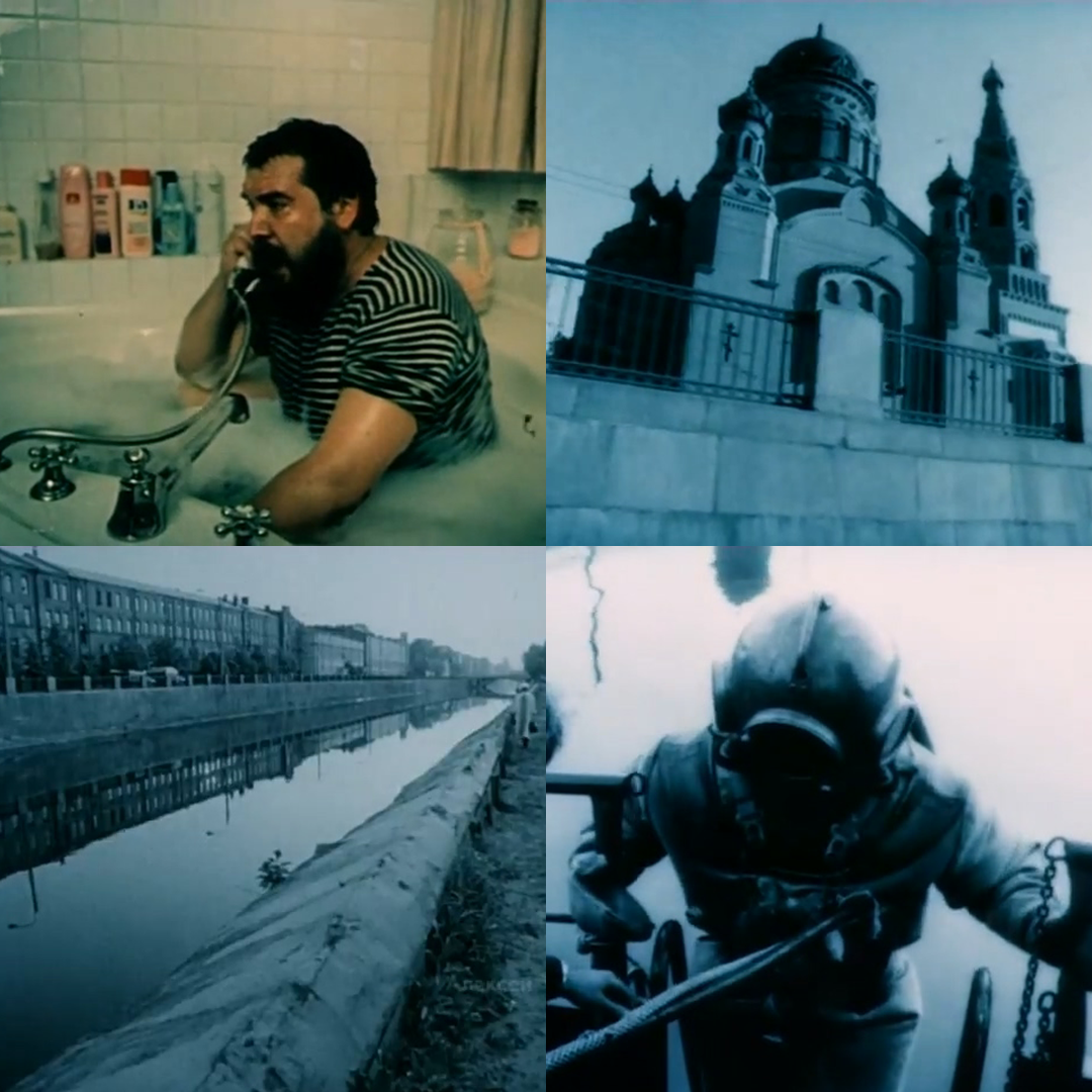 Одна из культовых и известных картин Ленинградской студии документальных фильмов. Сюжет картины при всей образности и поэтичности очевиден: есть Обводный канал как известное, даже мифическое, не имеющее конца и края, водное городское сооружение Петербурга. Вдоль этого канала сосредоточены: Психиатрическая больница, Военкомат, Пивная, Дом Культуры. Между этими, казалось бы, отдельными непохожими мирами Алексей Учитель протягивает едва заметную линию общей странности, забвения, грани между творчеством и сумасшествием. В картине, как можно предположить, есть сопоставление двух разных внутренних эмиграций. Эмиграция как уход в себя и тяжелое психическое погружение, отстранённость от внешнего мира у душевнобольных. И внутренняя эмиграция киногенично курящего диссидента Андрея Синявского, с которым во Франции встречаются участники арт-группы «Митьки». Также фильм очень ценен присутствием в кадре легендарного ленинградского поэта Виктора Кривулина, молодых Шагина, Тихомирова, Шинкарёва. Ну и,