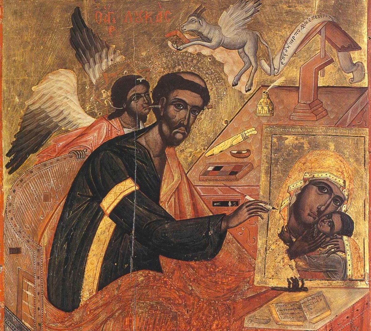 Церковное предание свидетельствует о том, что евангелист Лука первым написал образ Пресвятой Богородицы. Происхождение многих древних икон Божией Матери (Владимирской, Феодоровской, Смоленской и других) связывается именно с ним. Однако следует помнить, что во второй половине I века еще не оформился знакомый нам сегодня иконописный канон.
