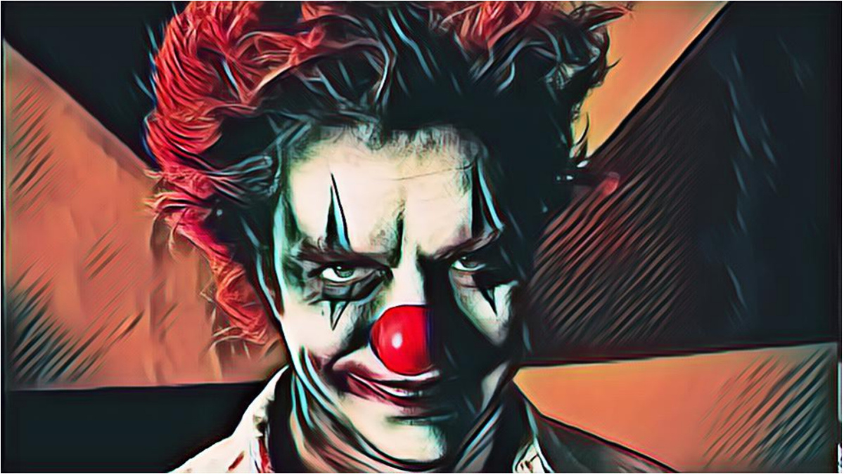 Знаете почему многие боятся клоунов? Психологи считают, что этот страх рождается из-за того, что под раскрашенной яркой маской мы не можем считать эмоции этого человека. Даже в цирке порой испытываешь дискомфорт, клоуны кажутся злыми, саркастичными, а не забавными. Конечно есть и термин, которым назвали эту фобию - коулрофобия. Правда в список психиатрических заболеваний она не попала, но как специфическое расстройство разной степени распространено среди взрослых и детей. Кстати, такая фобия есть у Джонни Деппа. Он очень настороженно относится к клоунам. И вот появилась еще одна отличная тема для создания пугающих историй. Ведь под маской клоуна может скрываться кто угодно - маньяк, инфернальная сущность, древнее зло или инопланетное существо. Вспомним фильмы, где людей преследует зловещий клоун?