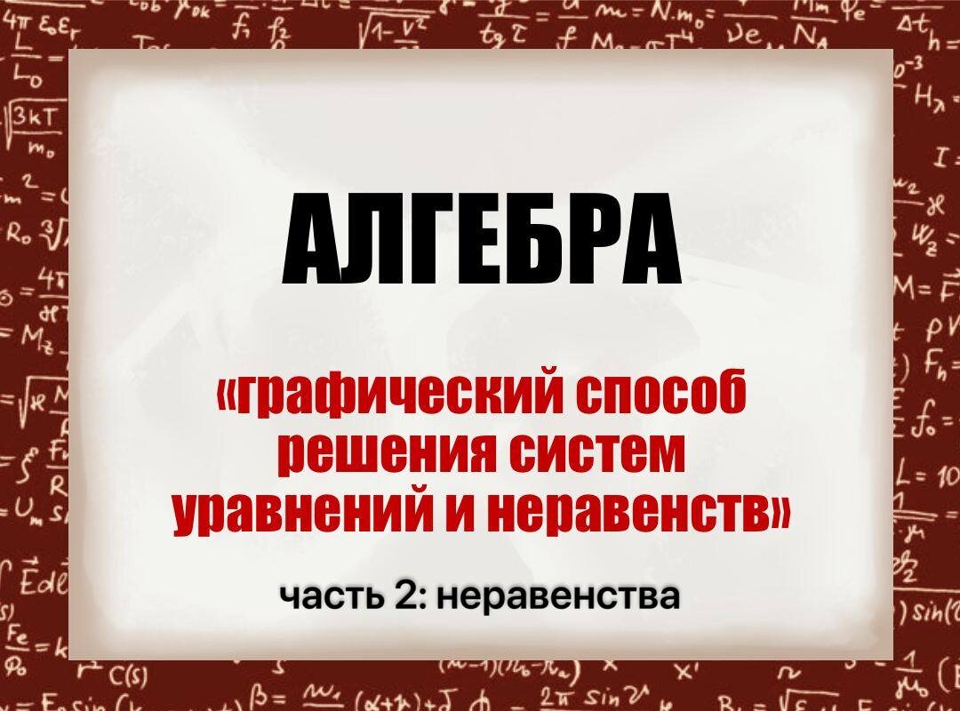 Здравствуйте! Как правило, графическое решение систем неравенств относится к областям учебника "для тех, кто хочет знать больше". Давайте сегодня узнаем больше. Первая часть: Графический способ решения неравенств с двумя переменными — это визуальный метод, который позволяет найти область решений неравенства на координатной плоскости. Алгоритм решения следующий: 1. Преобразуем неравенство в уравнение: Заменяем знак неравенства на знак равенства. 2. Строим график уравнения: Это будет прямая линия или кривая, которая разделяет координатную плоскость на две части. 3. Выбираем тестовую точку: Выбираем точку, которая не лежит на прямой или кривой. 4. Подставляем координаты тестовой точки в исходное неравенство: * Если неравенство выполняется, то область решений — та часть плоскости, где лежит тестовая точка. * Если неравенство не выполняется, то область решений — другая часть плоскости. 5. Заштриховываем область решений: Заштриховываем ту часть плоскости, где лежат точки, удовлетворяющие не