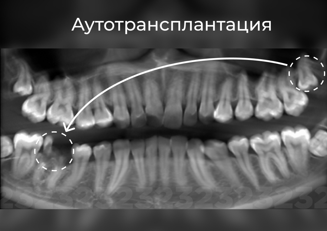 У пациента извлекают здоровый зуб из области, где он менее функционален (например, зуб мудрости или сверхкомплектный). Этот зуб становится донором и пересаживается в зону, где он необходим больше всего — на место удалённого зуба. Так, уникальная операция, смогла сохранить нашей пациентке родной зуб взамен безнадежного! И все благодаря медицинской мысли и экспертности врачей. 🦷 На место 46 зуба был выбран зуб 28, так как он идеальнее всего подходил по размерам корней и коронки. Убедиться в этом врачу хирургу-стоматологу помогла 3D модель коренного зуба, изготовленная по КТ снимку. Стоит отметить, что в данном случае донорский зуб сохранил свою жизнеспособность, так как он не был полностью сформирован. Это позволило ему успешно адаптироваться в новой лунке, в то время как в 90% случаев требуется удаление нерва. 📆 Уже через месяц врач снял фиксирующую шину, а на контрольном осмотре через 10 месяцев было видно, что зуб полностью прижился.