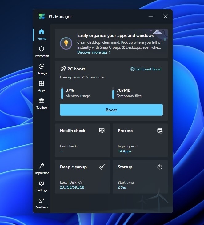 В Microsoft PC Manager появилась возможность отслеживать скорость интернета и глубокая очистка