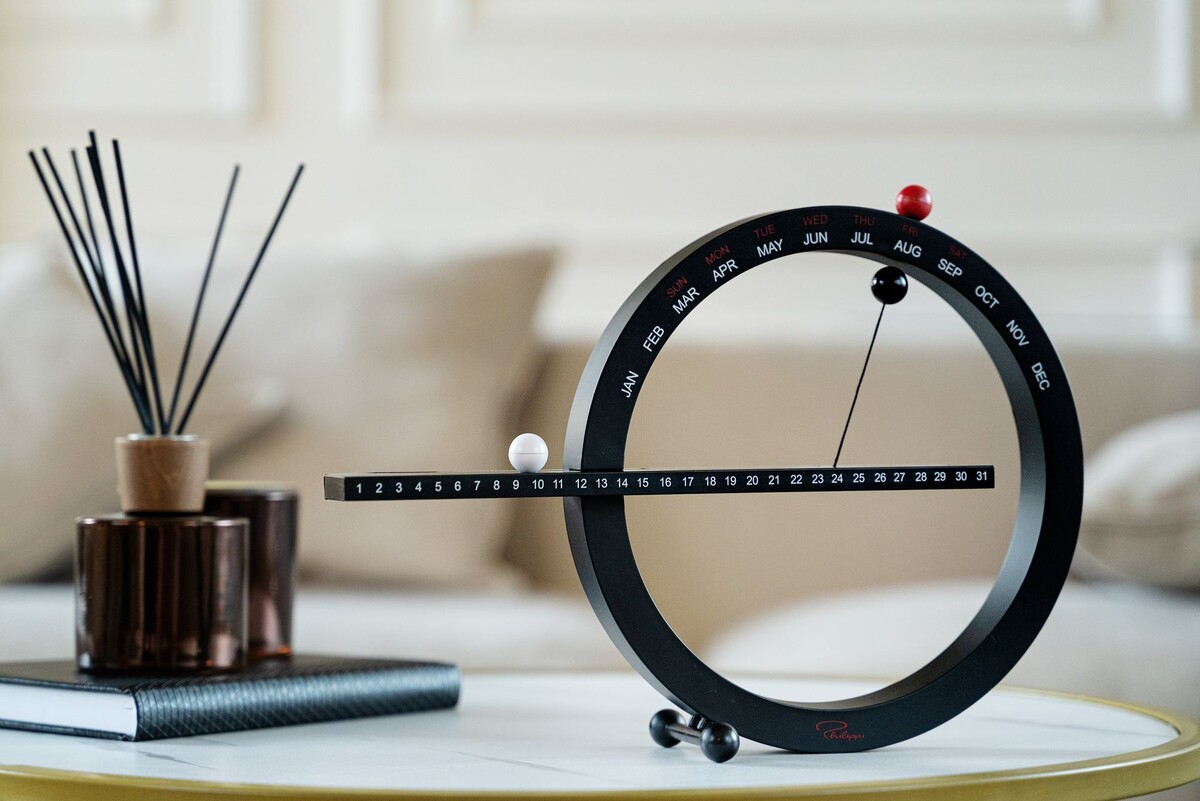 Обычные бегунки на ленте — прошлый век. К тому же это не всегда удобно. Рассмотрите для календаря полимерные наклейки под смолой или магнитные курсоры.