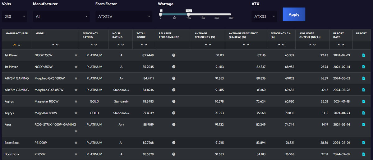 На сайте Cybenetics появилась интерактивная база данных с протестированными блоками питания