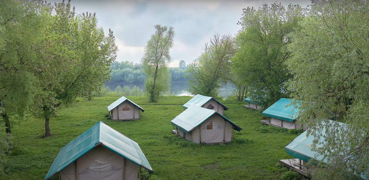 - Сафари-шатры и палатки. Эти конструкции легко возводятся и не требуют значительных капитальных затрат. Они устанавливаются на деревянные платформы, что позволяет защитить пол от влаги и сохранить ровную поверхность. Сафари-шатры и палатки часто утепляют, чтобы расширить сезон их использования.