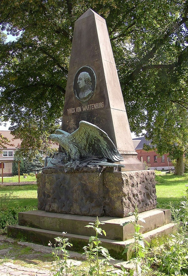 Оказавшаяся в стане проигравших Саксония не стремилась увековечить поля сражений на своей территории, так что мемориалов в Лейпциге в то время не появилось. Земли в среднем течении Эльбы, включая место переправы Йорка, по итогам Венского конгресса стали частью Пруссии, однако мемориализация поля боя при Вартенбурге также оказалась достаточно сложной. Типовой чугунный памятник по проекту К.Ф. Шинкеля был установлен на западной окраине деревни лишь в 1863 году, в пятидесятилетнюю годовщину сражения. На открытии присутствовали дожившие до этого события ветераны. К столетию битвы, в 1913 году, через дорогу от него был воздвигнут памятник Йорку – скромный обелиск с бронзовым профилем генерала, под которым помещена скульптура прусского орла. Сквер, в котором разместился новый монумент, и соседняя улица также получили имя Йорка. Но, если этот памятник сохранился, то «дарохранительница Шинкеля», сильно проржавевшая в период после Второй мировой войны, пала жертвой неприятия властями ГДР прусской символики. В 1963 году, к столетию битвы, вместо ремонта чугунный памятник был снесён и заменён на новый скромный каменный обелиск по проекту местного художника Э. Фивегера, на котором указаны только дата и название сражения. Венчающий прежний памятник Железный крест сохранился и в 2007 году был размещён рядом с памятником Йорку.
