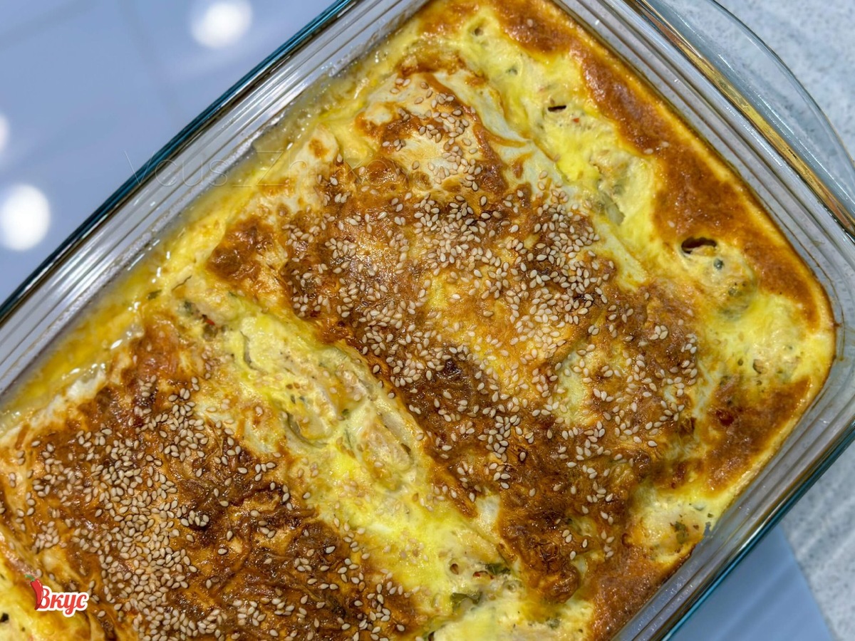 Готовим сливочную заливку из яиц, сметаны и сыра. Если сыр достаточно солёный, то дополнительно солить не нужно. Конверты из лаваша сверху посыпаем кунжутом и отправляем в разогрею до 180 градусов духовку на 40 минут. Возможно,