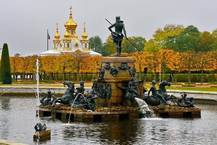 Главная жемчужина Санкт-Петербурга, Петергоф, славится своими фонтанами и живописными парками, которые привлекают туристов со всего мира. Один из самых впечатляющих объектов этого ансамбля — фонтан "Нептун", в котором предстает перед нами сам повелитель морей. Фонтан, олицетворяющий власть и могущество. Не заметить в Верхнем саду его невозможно! В 1797 году Павел I, будучи уже императором, приобрел фонтан «Нептун» для украшения Петергофа. Покупка была частью его плана по обновлению и расширению петергофского комплекса, которому он уделял особое внимание. Фонтан был перевезен в Россию и установлен в Верхнем саду, где и находится сейчас. Посмотрите ролик о Верхнем саду Петергофа, который открылся в мае 2024 года после реконструкции. Центральная фигура композиции — греческий бог морей Нептун. Его внешний вид и внушительный трезубец придают ему мощь и могущество. Скульптура окружена множеством деталей, изображающих морских существ, драконов и нимф. Благодаря символам и деталям композиции