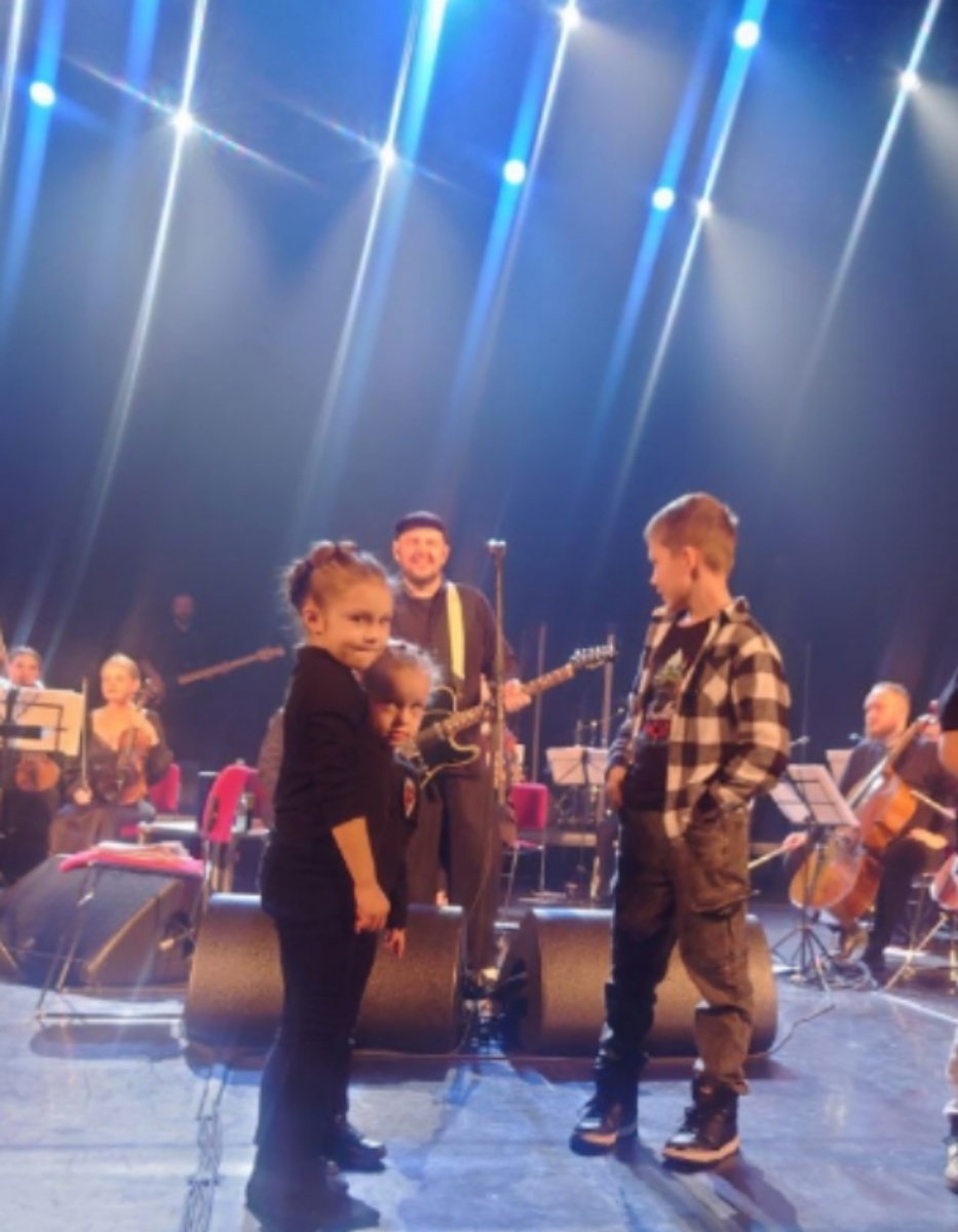 Сегодня на концерте с неё начались сюрпризы - именно на этой песне лидер группы порекомендовал залу посмотреть на нас - Я( мама) , Амрита и Агния(дочки) ( увы третья, Аврора, решила обзавестись именно сегодня зубами и напугав меня