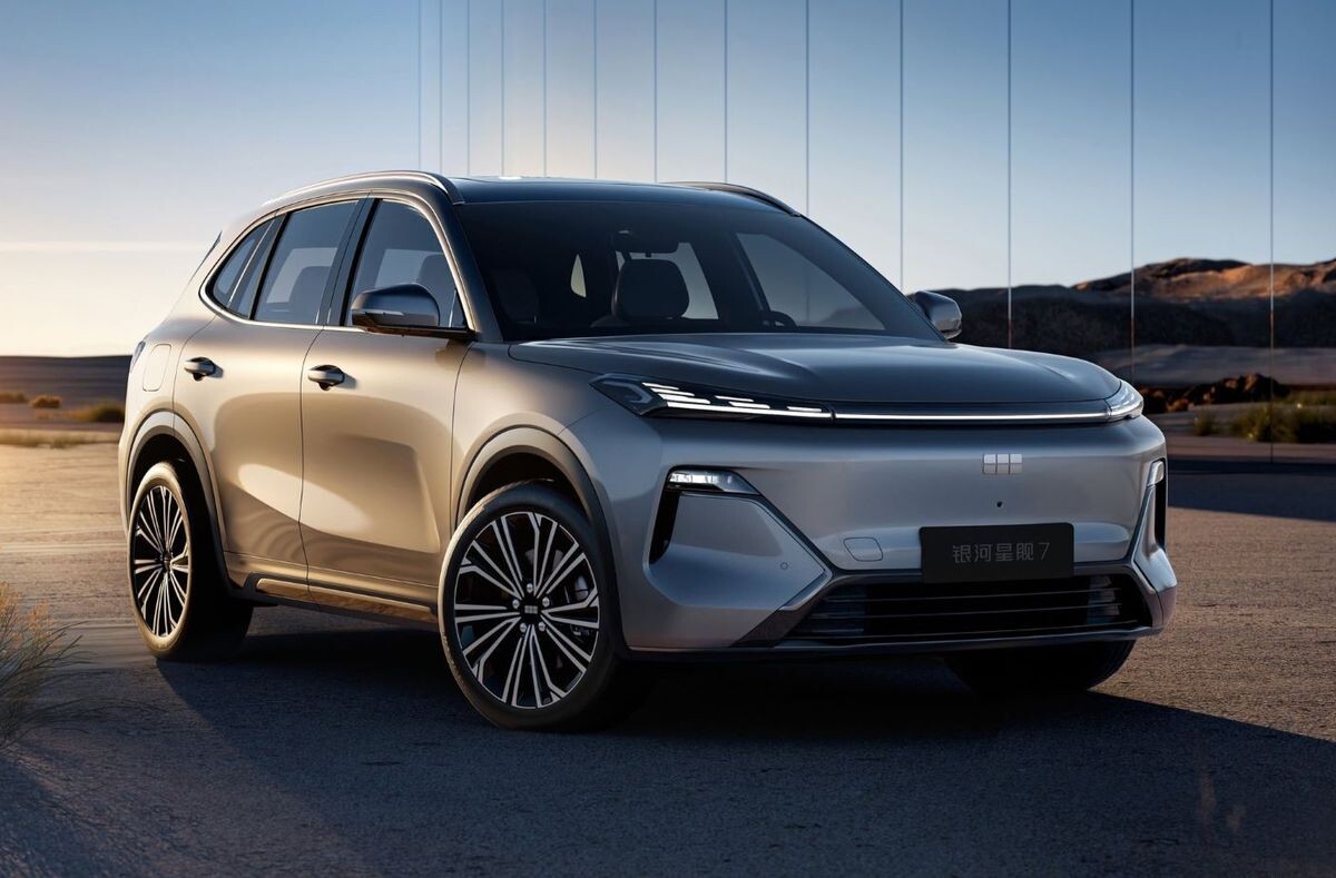 Geely опубликовала первые официальные изображения гибридного внедорожника Galaxy Starship 7. Появление новинки ожидается до конца текущего года. Длина Geely Galaxy Starship 7 составляет 4 740 мм, ширина 1 905 мм, а высота 1 685 мм. Он попадает в средний SUV-класс продолжая модельный ряд нового суббренда Geely – Galaxy. Geely Galaxy Starship 7 будет продаваться с гибридной установкой Thor нового поколения. Она состоит из 1.5-литрового двигателя-экстендера и электромотора, расположенного на передней оси. Максимальная мощность ДВС составляет 110 л. с. Кроссовер будет доступен в двух версиях с разной ёмкостью аккумулятора: 19 кВт/ч и 29 кВт/ч. Запас хода только на электротяге составит 101 и 150 километров соответственно. В зависимости от ёмкости батареи расход топлива составит 4,85 л/100 км и 4,88 л/100 км. Общий запас хода официально не объявлен. Дизайн салона Galaxy Starship 7 вдохновлён пейзажем «Три каменных столба в центре Западного озера», отражающим идеализированное слияние человека