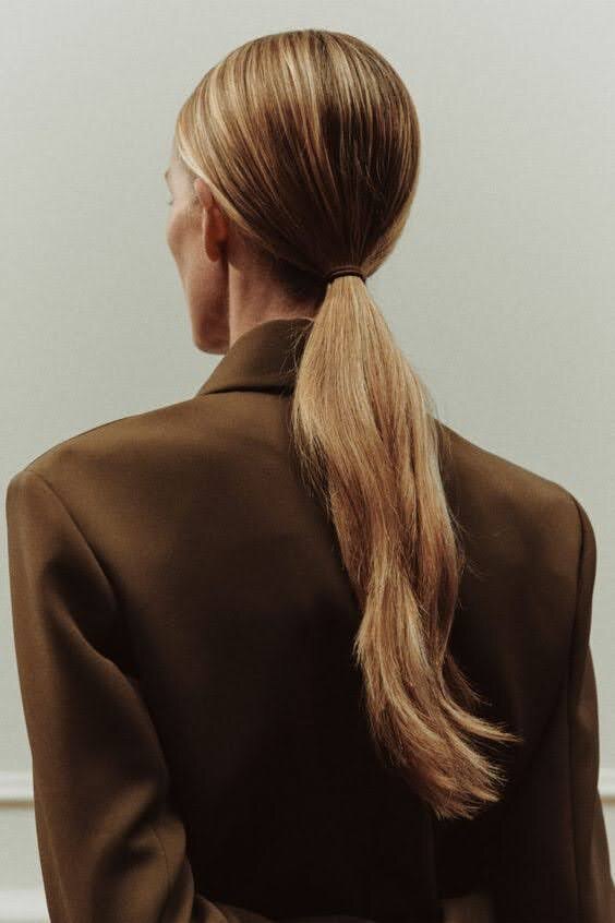 Низкий хвост — идеальная укладка на любое время года: в жару волосы выглядят аккуратно и не мешаются на лице, а в холодное время года такая причёска выглядит стильно даже под шапкой.
