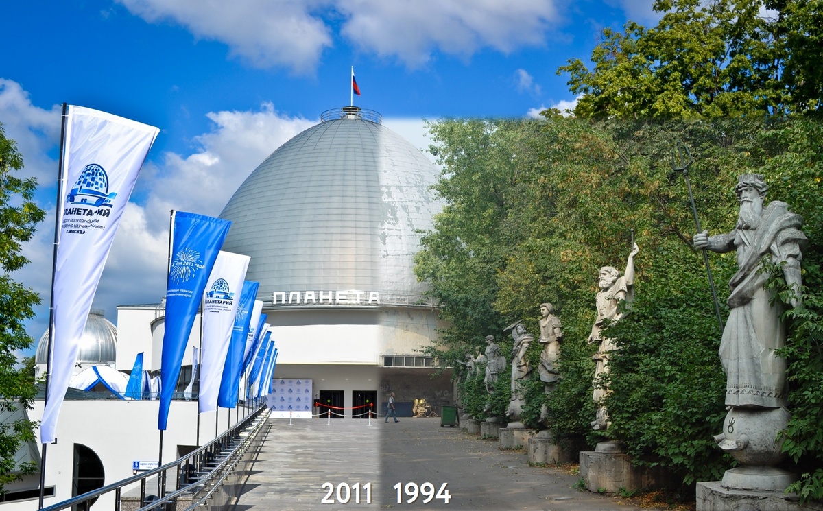 История Московского планетария содержит немало славных страниц, но в ней есть поистине драматические моменты и долгие годы забвения. К сожалению, в 1990-х годах, всеобщая тень застоя легла и на деятельность Московского планетария. Стало очевидно, что необходим не только ремонт, но и переоборудование. Замена главного аппарата влекла за собой более сложные перемены… В 1994 году московский Планетарий был закрыт на реконструкцию. Звездному дому предстояли долгие 17 лет до своего возрождения… В 1996 году появился Проект комплексной реставрации, реконструкции и полного переоборудования Московского планетария с учетом самых последних достижений в области проекционных технологий. Для нового Планетария не хватало площадей. Так возник уникальный проект подъема основного исторического здания с сохранением его архитектурного облика и дополнительного увеличения площадей за счет пристройки музейного корпуса на месте бывшей астрономической площадки. Однако юридические формальности отодвинули начало с