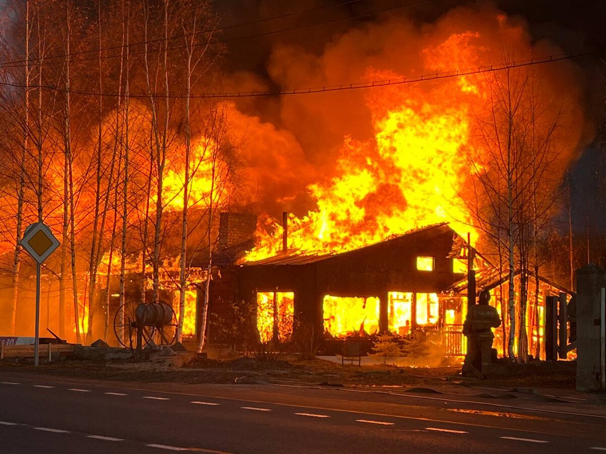Прямо сейчас в деревне Нижний Бесовец в Прионежском районе горит здание, в котором ранее располагалось кафе. Пожар начался около 17 часов. Эти кадры прислали наши подписчики. Они сняты прямо сейчас. Пока причина возгорания непонятна. Однако известно, что в данном здании располагалась печь с открытым огнем в центре. Когда-то местная предпринимательница, которой принадлежит это здание, организовала здесь страусиную ферму. Гостей фермы кормили как раз в этом здании. Потом ферму закрыли, здание выставлялось на продажу. По нашей информации от местных жителей, хозяева дома успели спастись. Однако данные уточняются и обновляются.