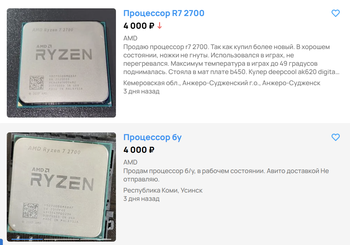 Так как рассматриваем мы исключительно Б/У, пройти мимо этого процессора я не мог. Ryzen 7 2700, господа! Так, уберите помидоры, дело тут в том, что стоит он вот столько:
