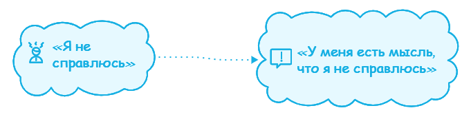 Когда вы испытываете сильные эмоции, определите мысль, которая приносит дискомфорт (например, «Я не справлюсь»). Остановитесь на мгновение и проговорите ее. Постарайтесь просто зафиксировать то, что вы думаете в данный момент. А затем проговорите эту мысль, добавляя фразу: «У меня есть мысль, что…». Например: «У меня есть мысль, что я не справлюсь».