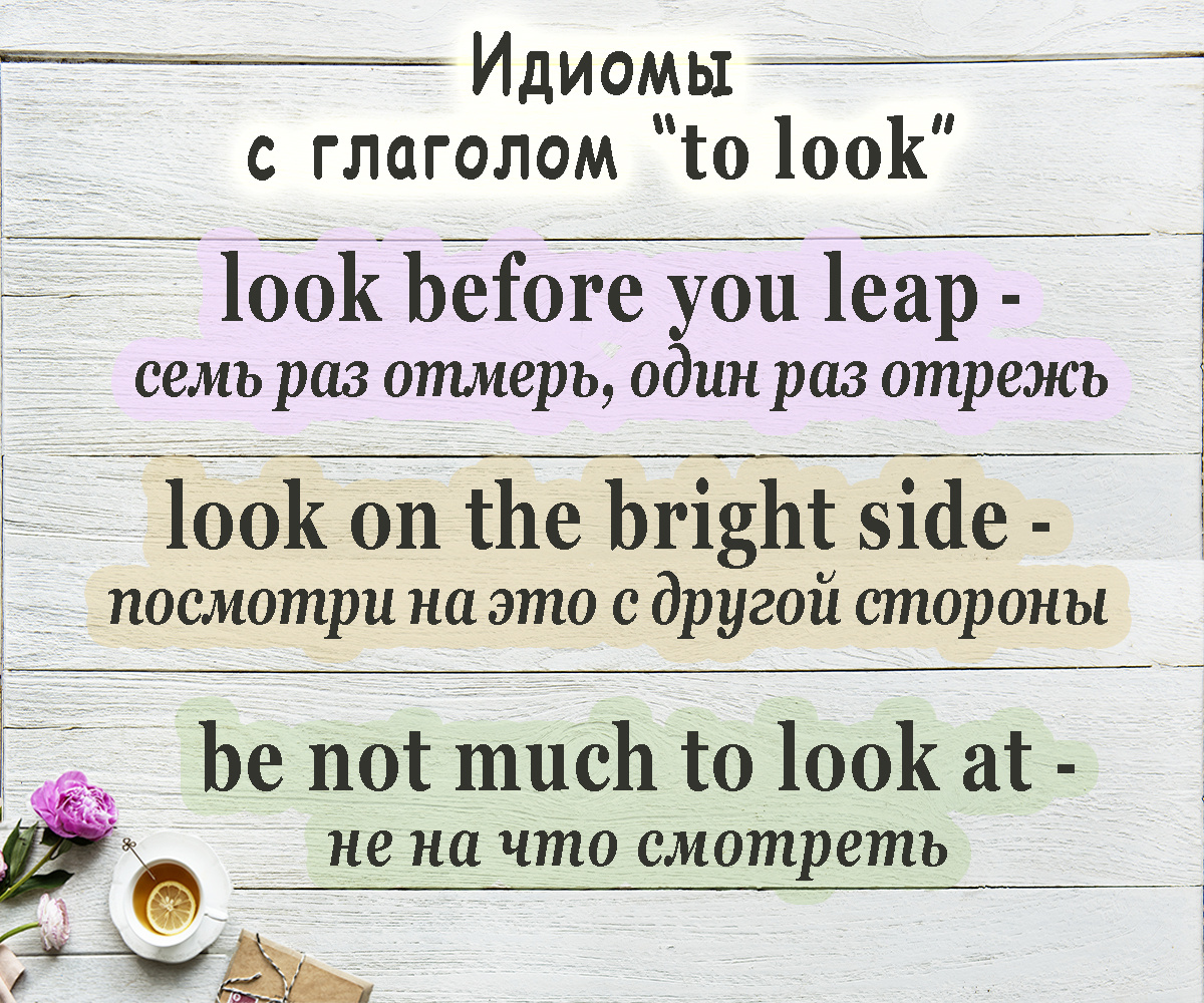 1️⃣ look before you leap - семь раз отмерь, один раз отрежь; хорошо подумай; ✔ Дословно - посмотри, прежде чем прыгнуть; ✔ Значение - тщательно обдумать возможные последствия, прежде чем принимать меры. ✔ Пример: The girl really should have looked before she leaped into this marriage! - Девушке следовало бы хорошенько подумать, прежде чем вступать в этот брак! 2️⃣ look on the bright side / look at the bright side - посмотри на это с другой стороны; ✔ Дословно - посмотри на светлую сторону; ✔ Значение - находить хорошее в плохой ситуации; смотреть на вещи с оптимизмом; ✔ Пример: She always tries to look on the bright side, no matter how tough things get. - Она всегда старается видеть во всем светлую сторону, как бы тяжело ни было. 3️⃣ be not much to look at - не на что смотреть; ничего особенного; ✔ Дословно- не так много, на что посмотреть; ✔ Значение - не отличаться привлекательностью; может использоваться как по отношению к предметам, так и к человеку. ✔ Пример: The house isn't much