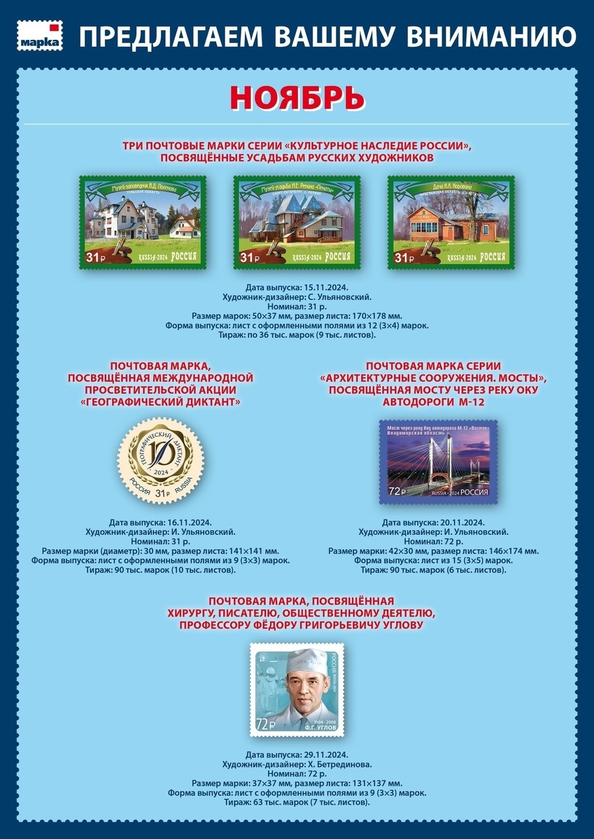 Анонс выпуска марок: ноябрь 2024 год